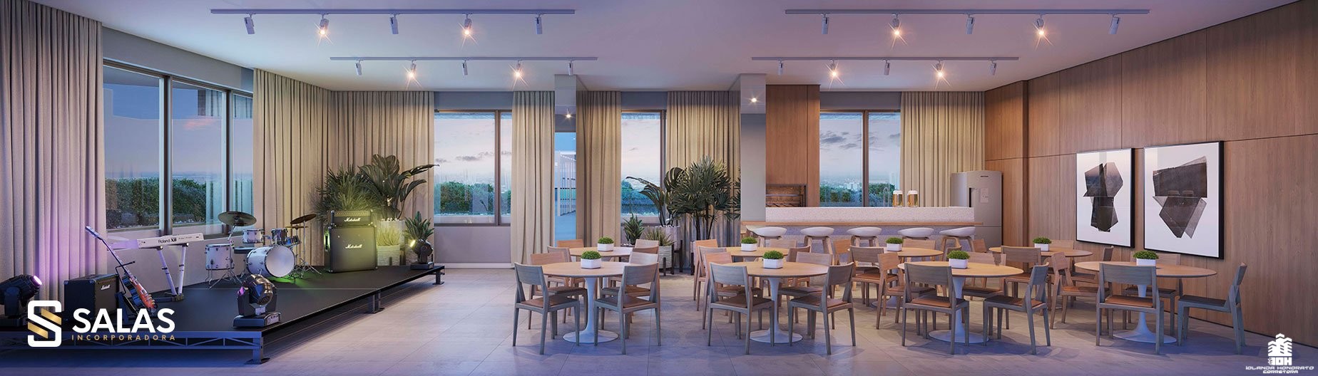O Aurora Home Resort também conta com amplo salão de festas com churrasqueira, preparado para receber desde pequenos eventos até grandes festas, além de espaços temáticos exclusivos como o Espaço Stake, Espaço Wine, Sports Bar e até um Espaço Gourmet VIP com SPA. Perfeito para você colecionar bons momentos com a famÃlia e os amigos.